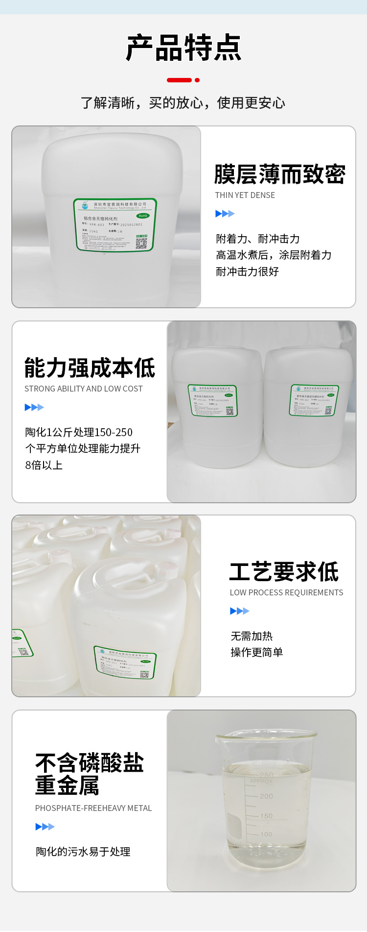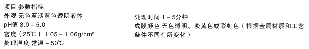 2.性能优异:形成的钝化膜具有良好的耐盐雾性能,能有效保护金属基体,延长金属使用寿命;膜层与后续涂层(如油漆、电泳漆等)的结合力强,提升整体涂层体系的性能。