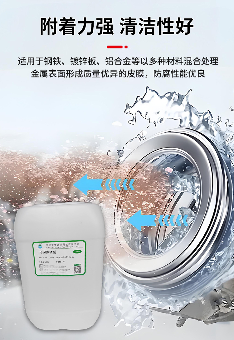 环保除锈剂是一种高效且环保的金属处理产品,旨在快速去除金属表面的锈蚀,同时保护环境免受污染,金属零配件等钢材的除锈,适用范围广,能够恢复金属原色,去除锈蚀、污染物(积碳)、氧化物等。对基材无损伤,能够洗净精密部件表面,同时保护塑胶、橡胶制品、油漆等材料不受影响。
