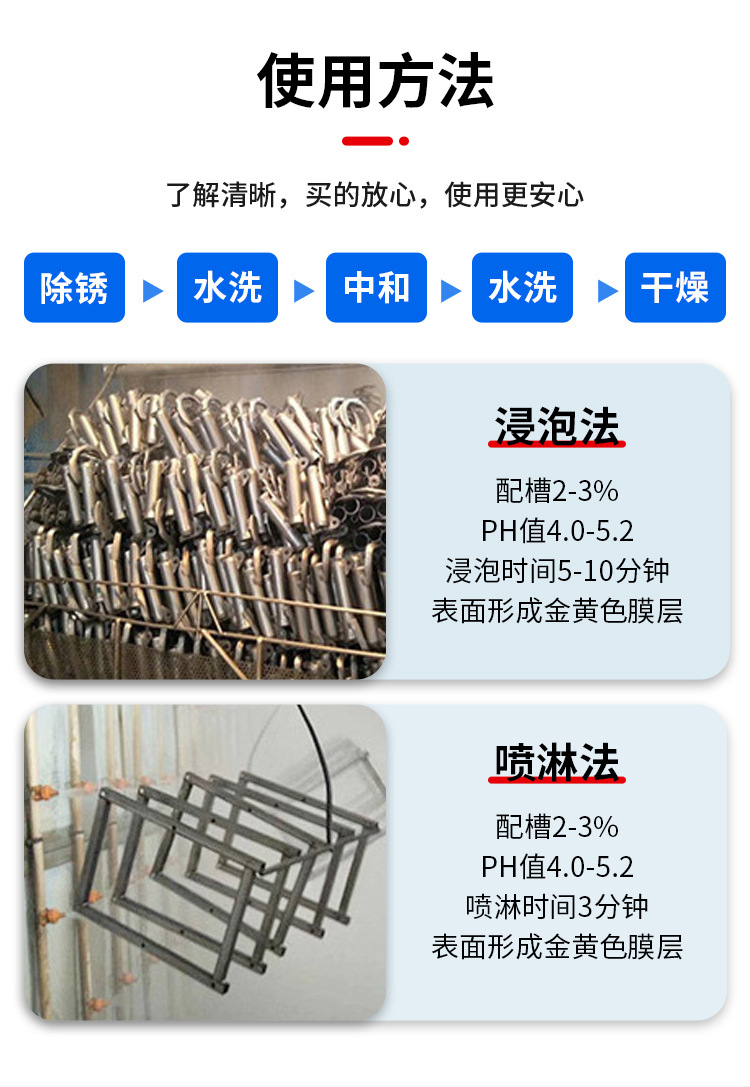 使用简便,可采用浸渍、涂刷、喷雾等方法使用。常温下发挥更佳效果与市面上其他除锈产品相比,除锈效果更加显著。对操作者安全,不会产生有害气体或刺激皮肤。