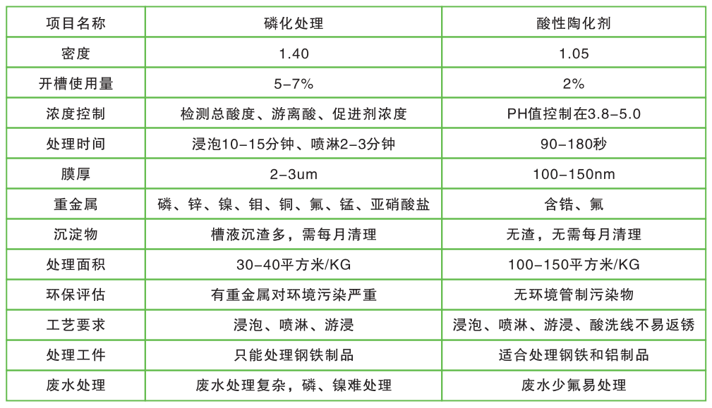 本硅烷处理剂与传统金属表面剂对比表: